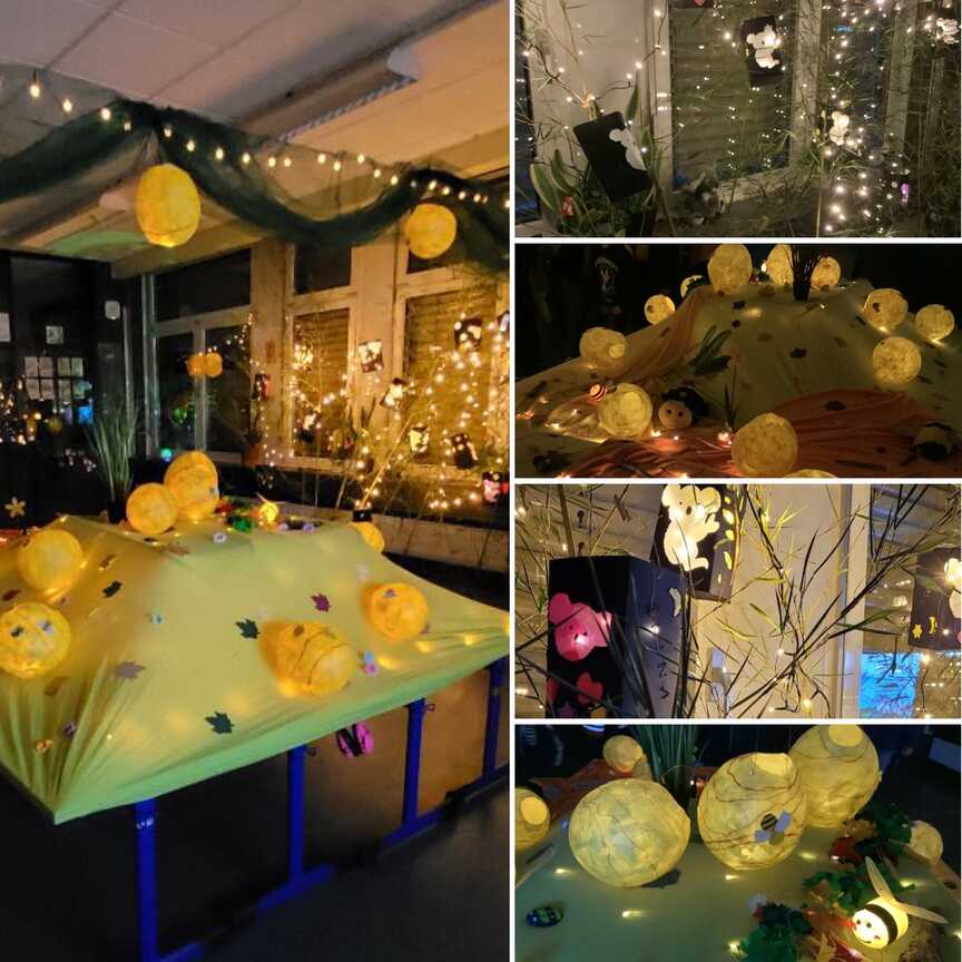 Beim Lichterfest des Ganztags herrschte heute eine ganz besonders schöne Stimmung - Hot Dogs und Kuchen sorgten für leibliches Wohl. Es gab tolle selbstgebastelte Kunstwerke der Kinder, die versteigert und verlost wurden. Und im Lichterglanz war der Spaß auf dem Schulhof garantiert.