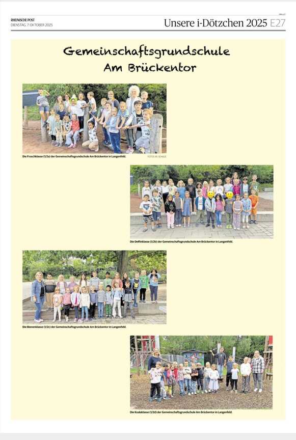 Auch in diesem Jahr waren unsere 1/2er Klassen mit den neuen i-Dötzchen in der Zeitung. Die Bilder wurden am 7.10.25 in der Rheinischen Post veröffentlicht.