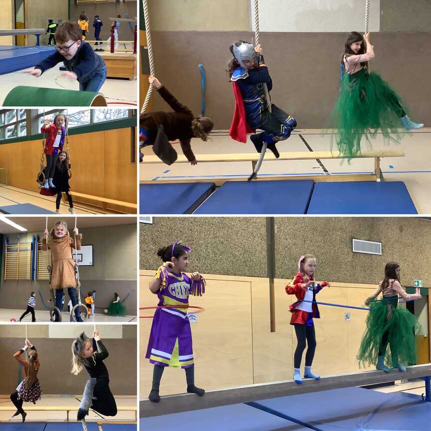 Der Weitsprung hat uns großen Spaß gemacht. Cool war, dass wir uns gegenseitig angefeuert haben. Der Sand in unseren Schuhen störte manche von uns jedoch. Besonders anstrengend war der 800 Meterlauf, aber alle Kinder kamen ins Ziel. Das Seilspringen vermissten viele Kinder. Zum Glück gab es ein langes Seil in der Pausenzeit. Viele Kinder sprangen als Gruppe gemeinsam. Wir konnten in dieser Zeit auch unglaubliche Körperbeherrschung von unseren Turnerinnen bestaunen.