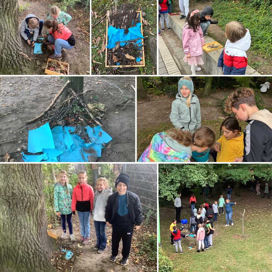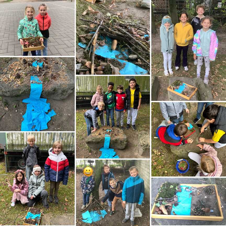 Gemeinsam wurden verschiedene Naturmaterialien gesammelt und sortiert, um daraus eine typische Biberlandschaft mit Biberbau und Staudamm zu bauen.