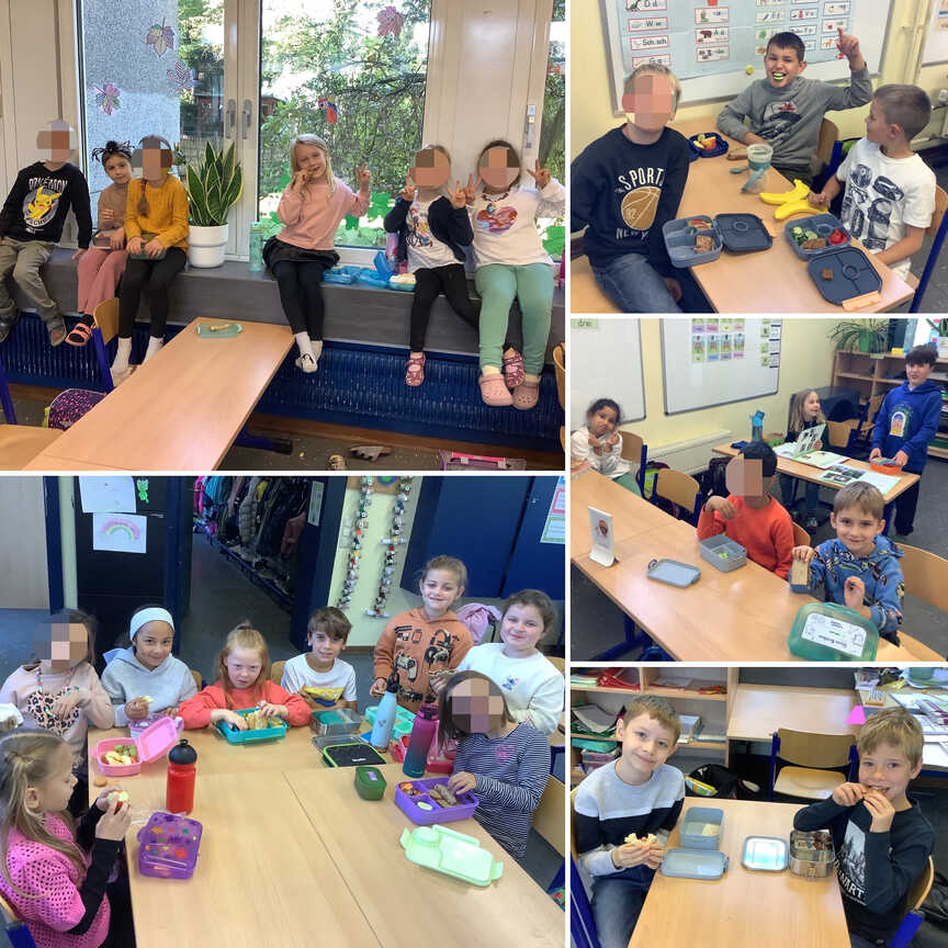 Im Sachunterricht haben wir viel über den Apfel gelernt. Wir wissen, wie aus einem kleinen Apfelkern ein großer Apfelbaum werden kann und auch, warum Bienen so wichtig sind, damit wir leckere Äpfel essen können. Passend zu diesem spannenden Thema haben wir Fensterbilder geprickelt und geklebt. Das "Apfeltasting" hat uns sehr gut gefallen. Dabei haben wir verschiedene Apfelsorten probiert und miteinander verglichen. Aber ganz besonders war die Stunde, in der es um weitere Apfelprodukte ging. Dazu haben einige Eltern leckere Kleinigkeiten vorbereitet, die wir alle probieren durften - Apfelkuchen, Apfelsaft, Apfelchips, Apfelkraut und vieles mehr. Lecker!