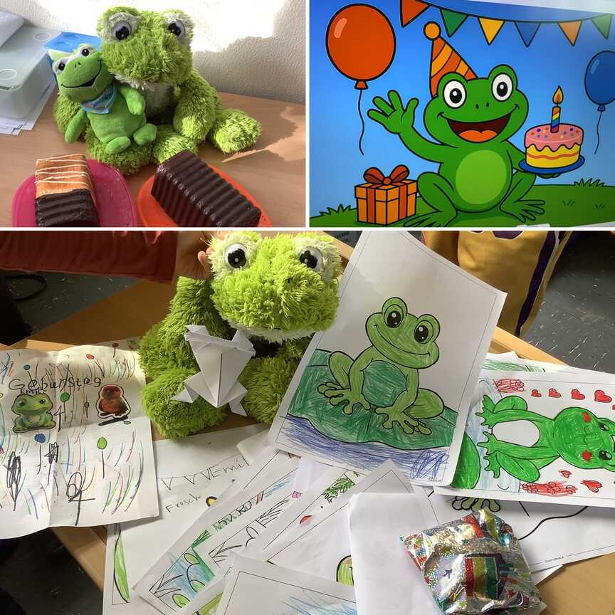 Emil, unser Klassentier wird 4. Das haben wir mit einem Ständchen und leckerem Kuchen gefeiert. Von den Fröschen gab es sogar viele tolle Geschenke für unseren gemeinsamen Freund.
